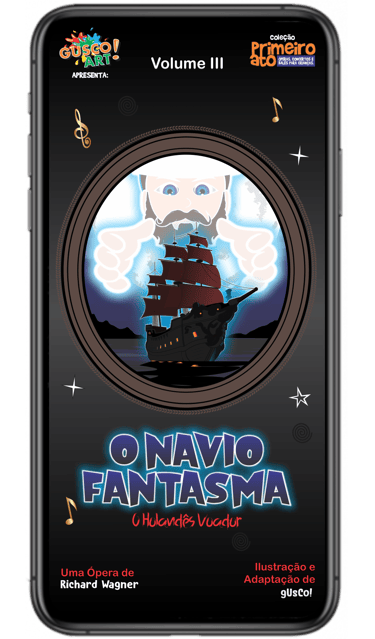 Esta é uma adaptação para crianças de qualquer idade, cuidadosamente reescrita e ilustrada, para ser lida ou contada, trazendo cultura, conhecimento musical e abrindo portas para o despertar do interesse musical erudito, que será seguido e lembrado por toda a vida. O NAVIO FANTASMA traz indicações das músicas originais, através da plataforma Spotify (se o comprador tiver assinatura) e Youtube (gratuito), para entender todo o contexto e sentimento da cena que está sendo mostrada.